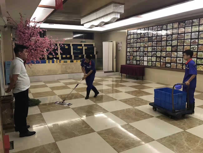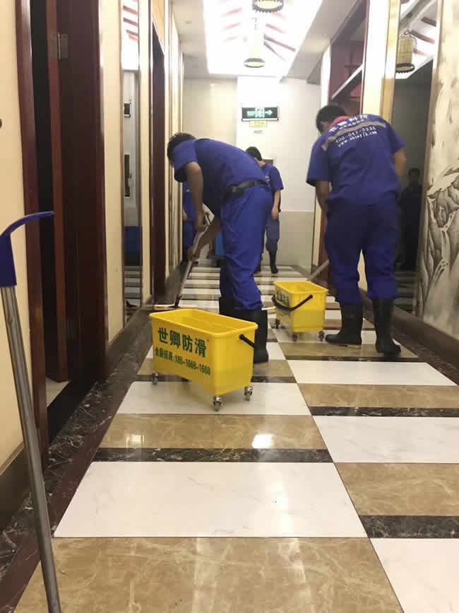 上海青浦區(qū)北青公路 乙丙潤(rùn)大酒店 地面防滑處理于2017年9月12日夜全部施工完成。 酒店大廳高亮度瓷磚,經(jīng)過(guò)世卿防滑劑處理后,具有高效防滑且不影響瓷磚的亮度和美觀,這就是世卿防滑劑與劣質(zhì)產(chǎn)品的區(qū)別。你要做低端,低價(jià)請(qǐng)不要找世卿,如果需要高標(biāo)準(zhǔn)的服務(wù)質(zhì)量請(qǐng)聯(lián)系我們。