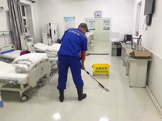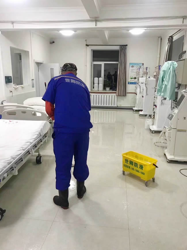 吉林舒蘭市第二人民醫院即之前康復理療室做過防滑之后,院方領導對防滑效果非常滿意,于4.23日夜里對血液透析科再次進行地面防滑處理,感謝院領導的信任于肯定!世卿防滑近期內陸續會對全院地面進行防滑處理。