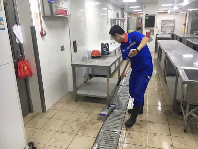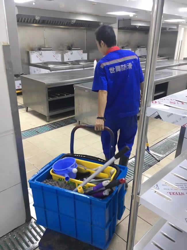 上海市劍川路國力電投人才電子學(xué)校廚房地面于2017年10月7日施工完成。