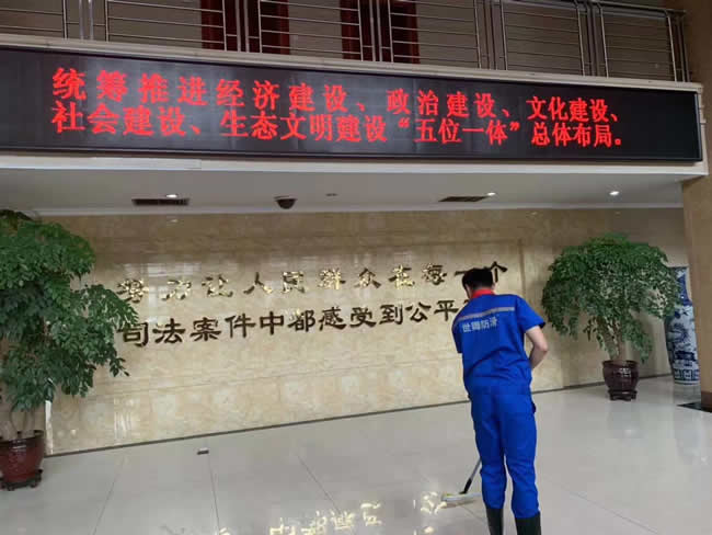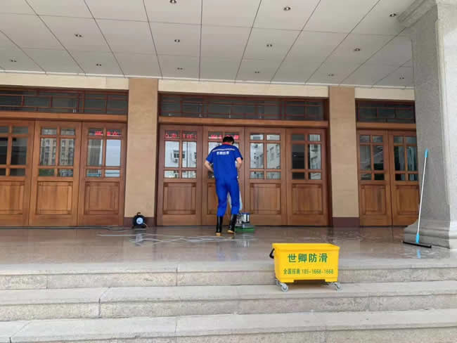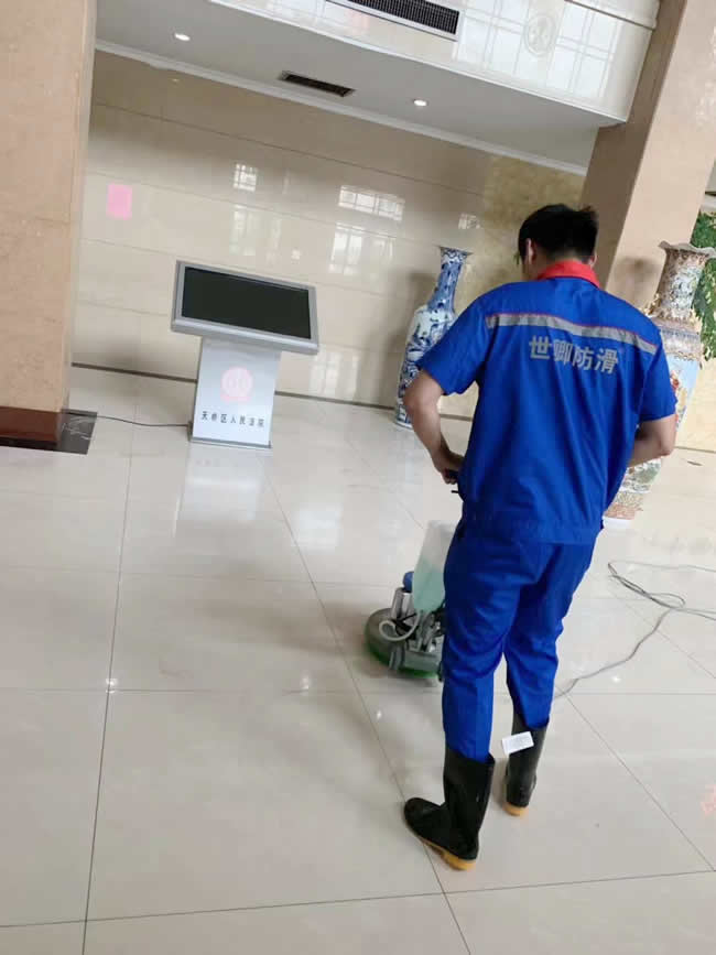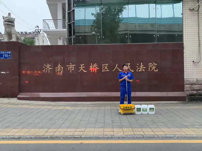 濟南天橋區人民法院為了人民行走安全,委托世卿進行地面防滑防護施工處理,為具有大愛精神的領導點贊關愛行走安全,世卿為您保駕護航!