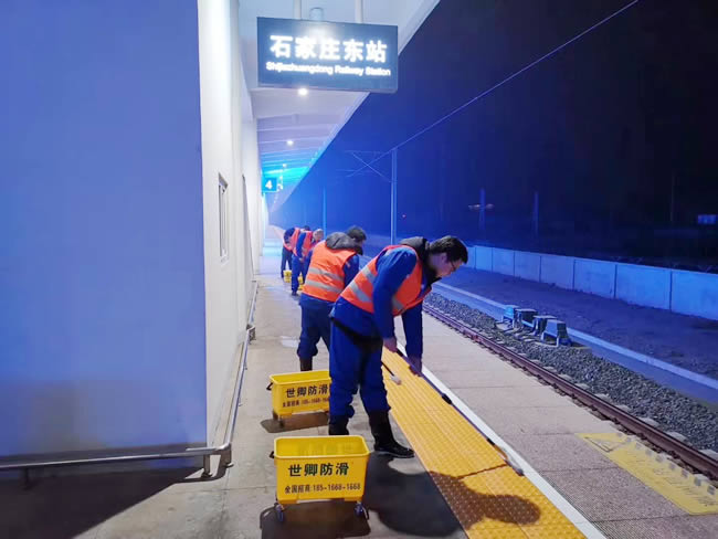 河北世卿于2019.3.4順利完成高鐵石家莊東站地面防滑處理,根本上減少了萬(wàn)千旅客的行走安全隱患,保障了車站的安全順利暢通。世卿,作為防滑防護(hù)行業(yè)領(lǐng)軍品牌,首創(chuàng)安全防護(hù)新概念,提供全球?qū)I(yè)技術(shù)指導(dǎo),實(shí)現(xiàn)定制化的安全防護(hù)解決方案,為國(guó)人出行安全保駕護(hù)航!世卿防滑,防滑世家。