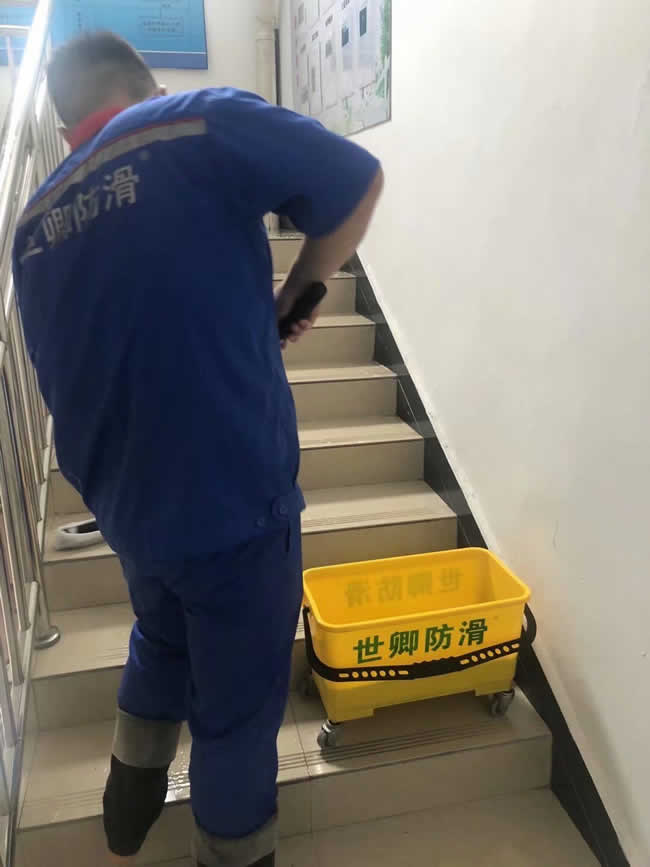 世卿防滑免費為上海青浦區東盛居委會樓梯臺階進行地面防滑處理。