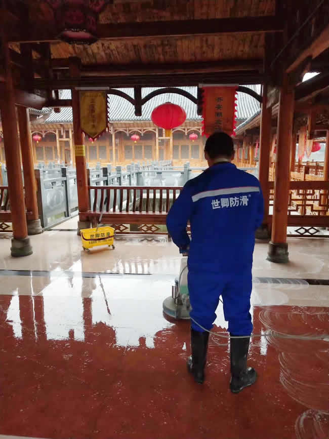 世卿防滑(黃岡團(tuán)隊(duì))凌晨冒著大雨己展開湖北黃岡市黃州區(qū)齊安湖生態(tài)農(nóng)莊3000平米場地施工。酒店行業(yè)明星大企業(yè)選擇防滑大品牌。帶給客戶的是一份安全一份責(zé)任!