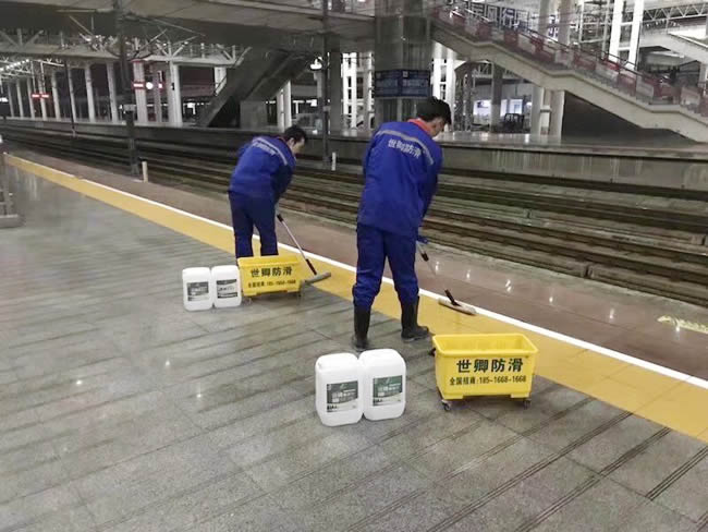 上海鐵路局旗下常州高鐵站,站臺(tái)及盲道磚地面防滑處理于2018年3月13日完工了……世卿防滑,國(guó)內(nèi)外知名品牌,承接了國(guó)內(nèi)大部分大型工程案例。