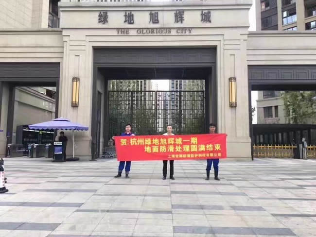 熱烈慶祝,世卿防滑又與一大型房產公司(旭輝集團)簽訂地面防滑長期供貨施工合同。截止目前:上海世卿與萬科集團,旭輝集團,綠城集團,龍湖集團等5個大型房地產公司簽訂地面防滑長期供貨施工合同。感謝萬科員工鼎力推薦本公司產品及服務,讓世卿防滑服務更多的家庭及公共場所。 世卿防滑國內權威,頂級資質,一流的服務,專業嚴謹的施工團隊。 本工程于2017年8月20日至8月22結束,歷時3天,完美收官。